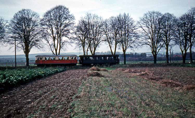 Im Jahr 1954 begann man bei der Gartetalbahn sich Gedanken darueber zu machen, wie man den teuren Dampfbetrieb durch andere Fahrzeuge guenstiger durchfuehren koennte. Die Betriebskriterien verlangten deshalb nach einem Triebwagen. Ein neues Fahrzeug konnte sich die Bahn nicht leisten und so war man auf der Suche nach einem gebrauchten Fahrzeug. So kam man auf den Triebwagen der Kleinbahn Steinhelle – Medebach ( Kreis Brilon ), welche 1953 liquidiert wurde. Der Triebwagen besaß die seltene Spurweite von 785 mm, musste also fuer den Betrieb auf der Gartetalbahn umgespurt werden. Am 27.Mai 1954 ( Himmelfahrt ) nahm der Triebwagen seinen Dienst auf und fuehrte ihn zu jedermanns Zufriedenheit bis zu seiner Ausmusterung aus.
